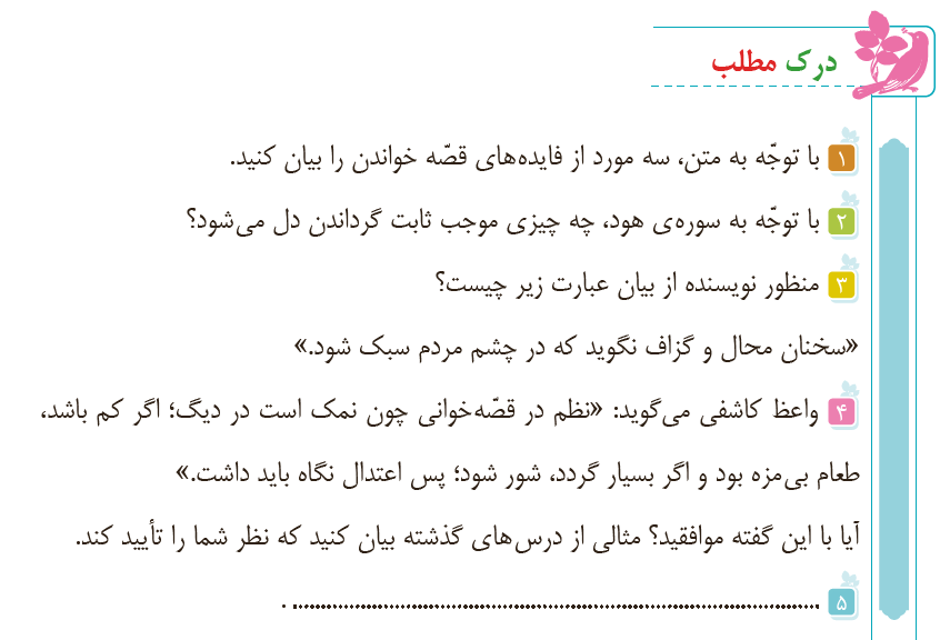 سوال 1: با توجه به متن، سه مورد از فایدههای قصّه خواندن را بیان کنید.