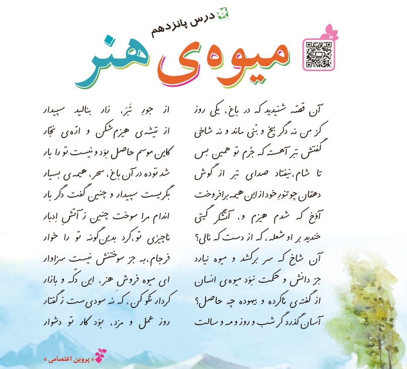 معنی درس میوهی هنر صفحه 98 فارسی ششم