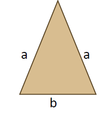 سوال 1: در مثلث متساویالساقین مقابل، اندازه ساق را با a و قاعده را با b نشان میدهیم.