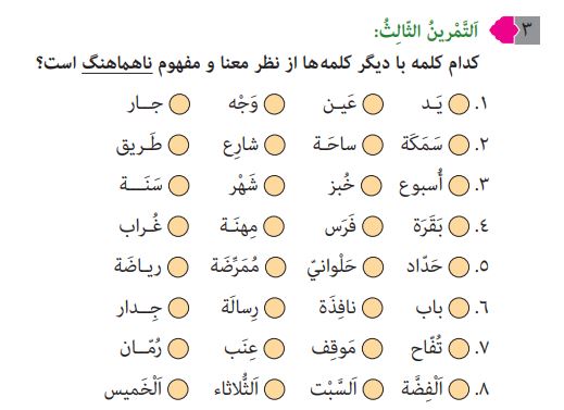 سوال: کلمات مترادف و متضاد را مشخص کنید.