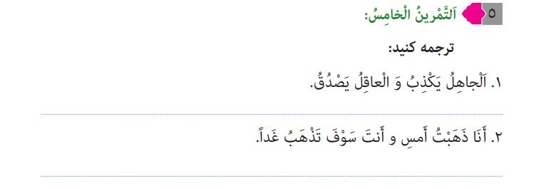پاسخ تمرین سوم تا پنجم عربی هشتم صفحه 68