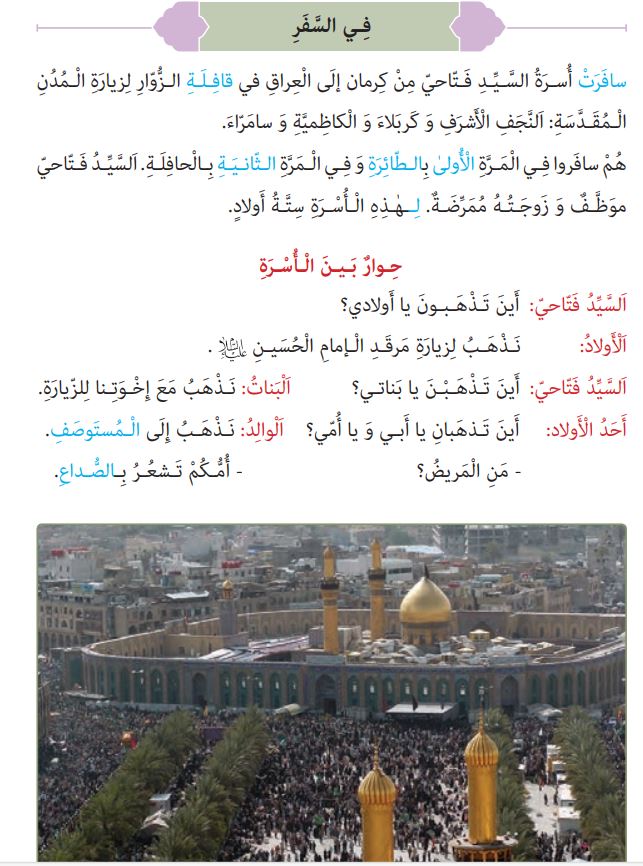 الْأَولادُ :نَذْهَبُ لِزیارَةِ مَرقَدِ الْإمامِ الْحُسَینِ (ع).