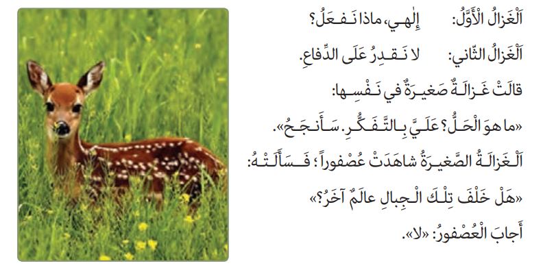 اَلْغَزالَةُ الصَّغيرَةُ شاهَدَتْ عُصْفوراً؛ فَسَأَلَتْهُ: