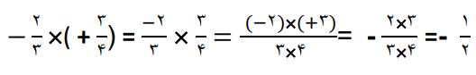 سوال 2: با توجه به جدول بالا، ابتدا علامت حاصل ضرب را تعیین کنید؛ مانند نمونه با ضربِ کسرها حاصل را پیدا کنید.