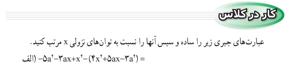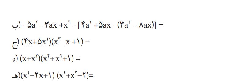 سوال: عبارتهای جبری زیر را ساده و سپس آنها را نسبت به توانهای نزولی x مرتب کنید.