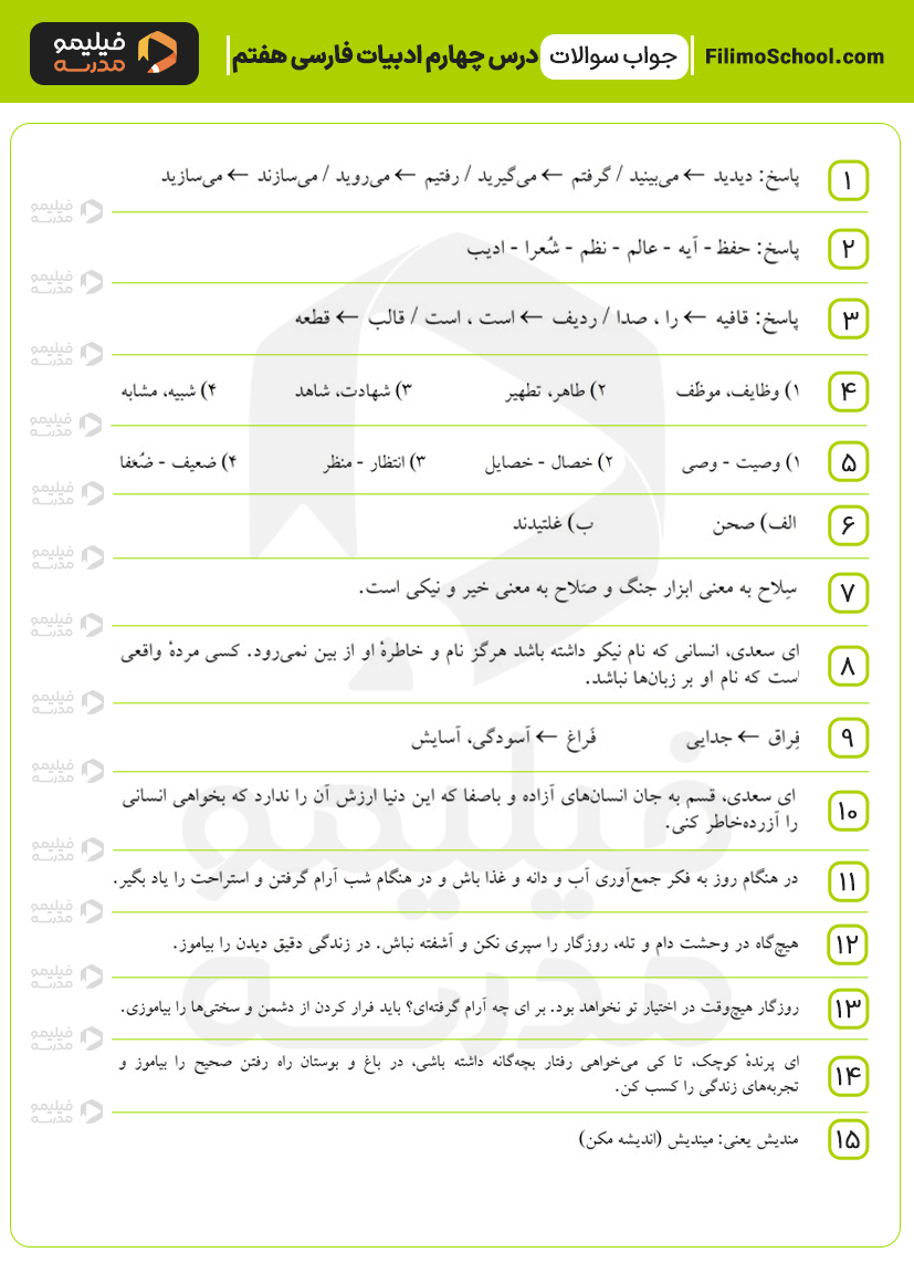تصاویر سوالات ![نمونه سوالات درس چهارم ادبیات فارسی هفتم]()