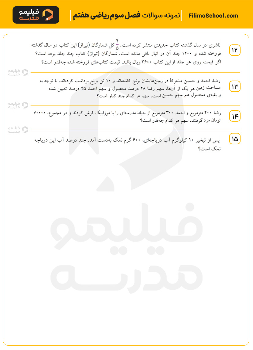 دانلود نمونه سوال فصل سوم ریاضی هفتم – سری دوم