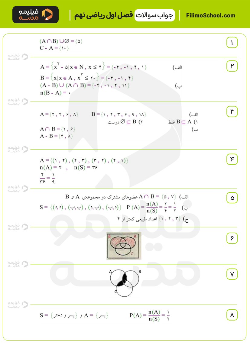 نمونه سوالات فصل اول ریاضی نهم