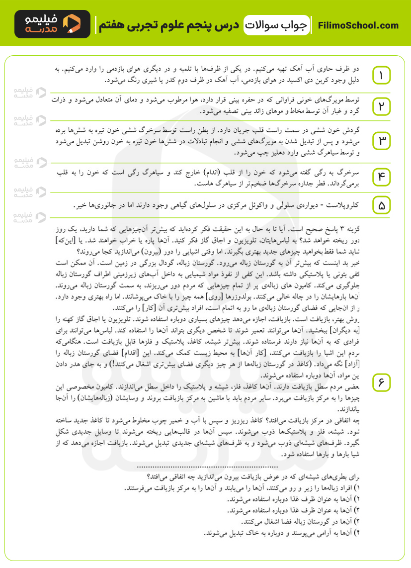 دانلود نمونه سوالات فصل پنجم علوم هفتم با جواب