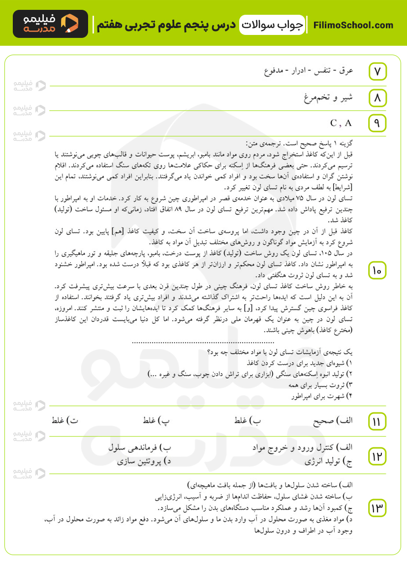 این فایل pdf شامل 15 سوال امتحانی از درس پنجم علوم هفتم است.