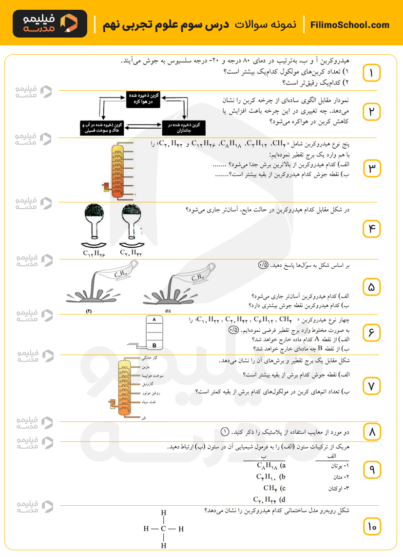 این فایل pdf شامل 15 سوال امتحانی درس سوم علوم نهم است.