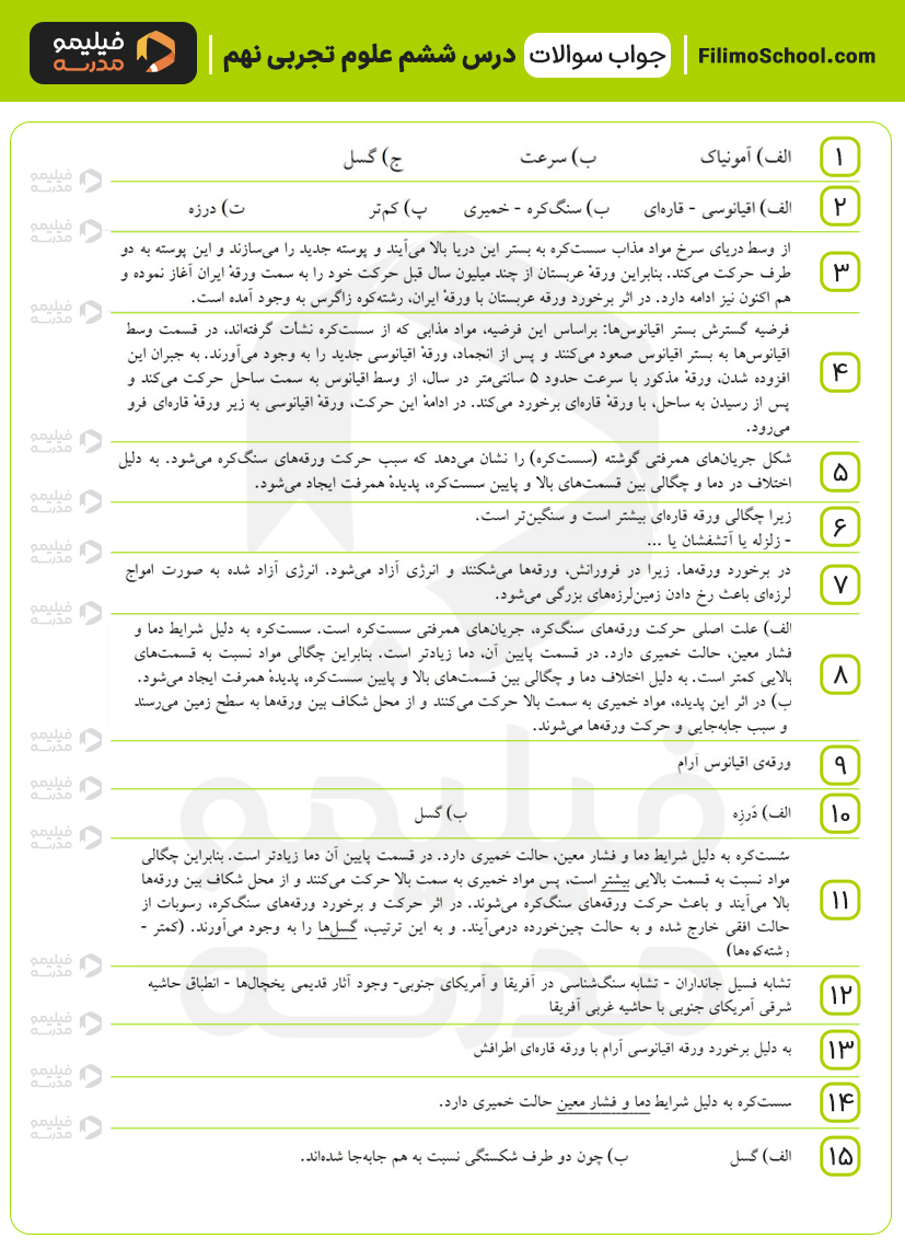 این فایل pdf شامل 15 سوال امتحانی درس ششم علوم نهم است.