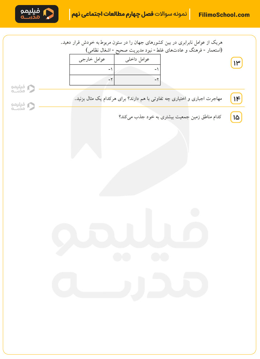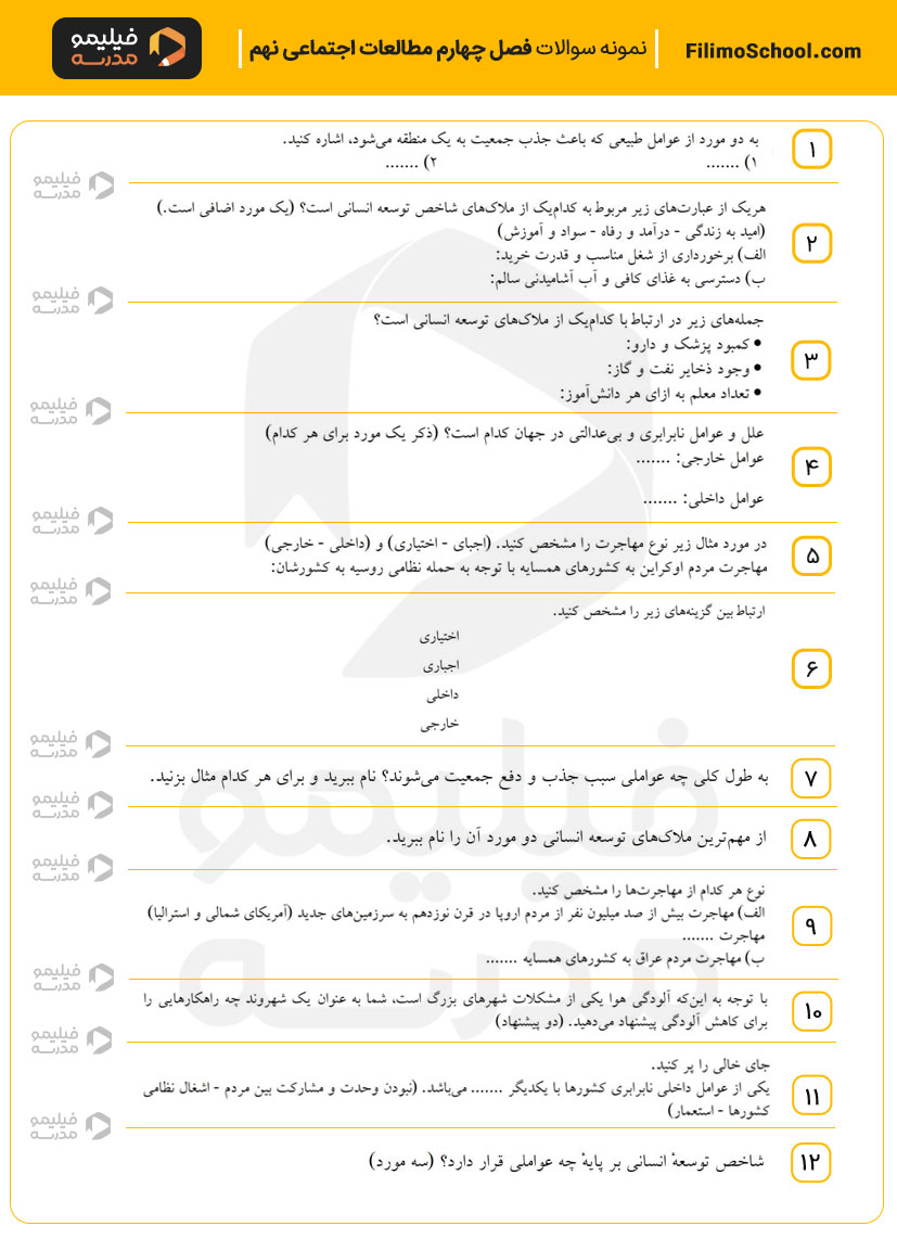 این فایل pdf شامل 15 سوال امتحانی از فصل چهارم مطالعات اجتماعی نهم است.