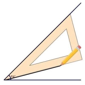 برای این کار ابتدا یک زاویه راست بکشید. سپس گوشه ۳۰ یا ۶۰ درجه را روی رأس زاویه بگذارید و یک خط بکشید.