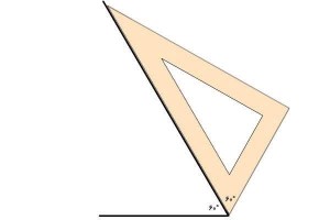 به سادگی و بدون هیچ اندازهگیری میتوان این مورد را تشخیص داد. سپس گونیا را روی کاغذ بگذارید و دو پارهخط را رسم کنید.