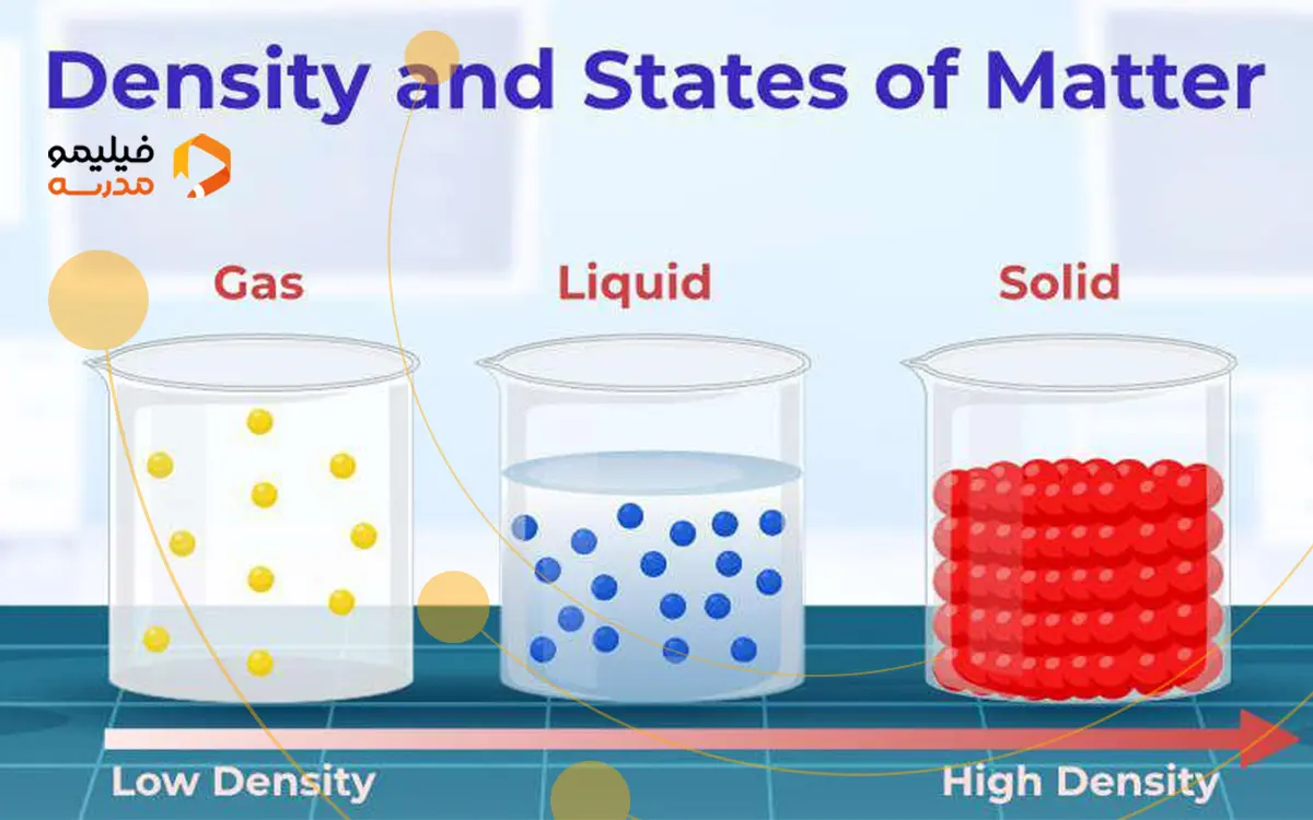 از چپ به راست: (گاز، مایع، جامد، چگالی بالا ⇐ چگالی پایین).