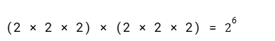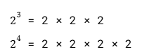 در مجموع، هفت بار عدد 2 در خودش ضرب شده است، بنابراین توان نهایی میشود 7.