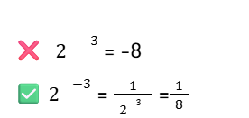 توان منفی علامت عدد را عوض نمیکند. یعنی: