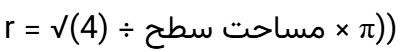 وقتی مساحت سطح را داشته باشیم، ابتدا میتوانیم از این فرمول شعاع را پیدا کنیم. برای این کار، فرمول را برعکس مینویسیم: