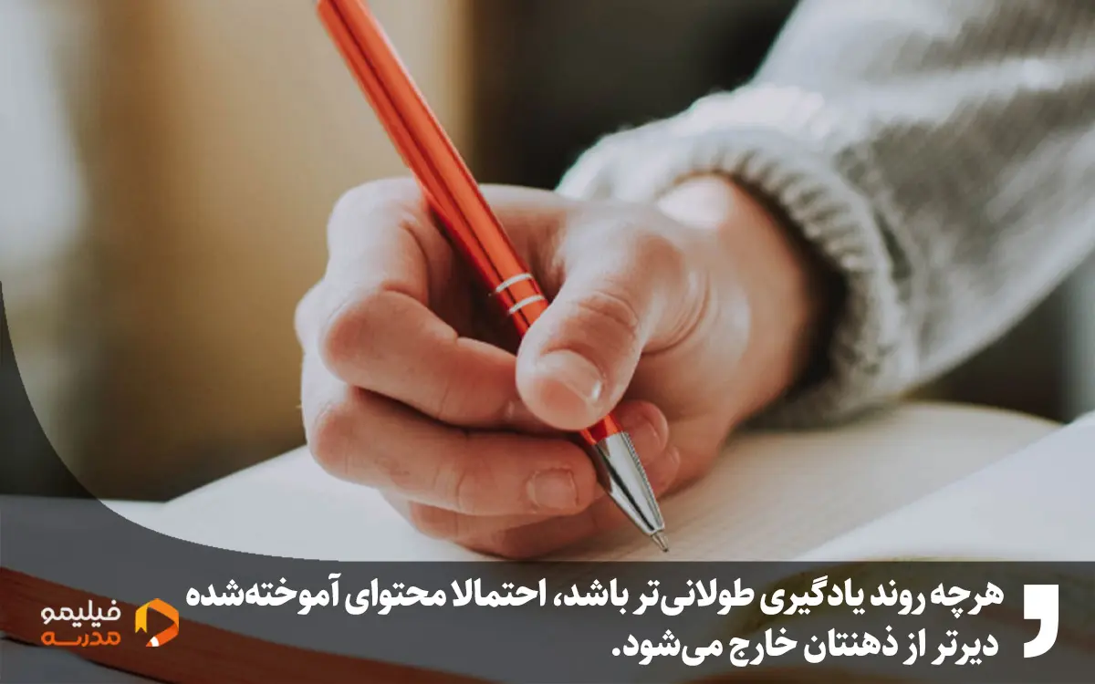 حتی اگر از خوش حافظهترین افراد که قدیمیترین خاطرات بچگی را مثل اتفاقات دیروز به خاطر میآورند بپرسید، خیلی وقتها مطالب کتابهای درسی طوری فراموشمان میشود که انگار تابهحال یک بار هم نخواندهایمشان! حتی ممکن است به خیالمان آن مطلب را جویده و قورت داده باشیم؛ با این حال آنقدری در خاطرمان نمیماند که بعدها بتوانیم در زندگی از آنها استفاده کنیم. اما هیچ چالشی بدون چاره نیست! روشها و تکنیکهای مختلف وجود دارند که اگر آنها را بهکار بگیریم میتوانیم مطالب آموختهشده را مدتزمان طولانیتری در ذهن نگه داریم. همراه ما باشید تا درباره این روشها صحبت کنیم.